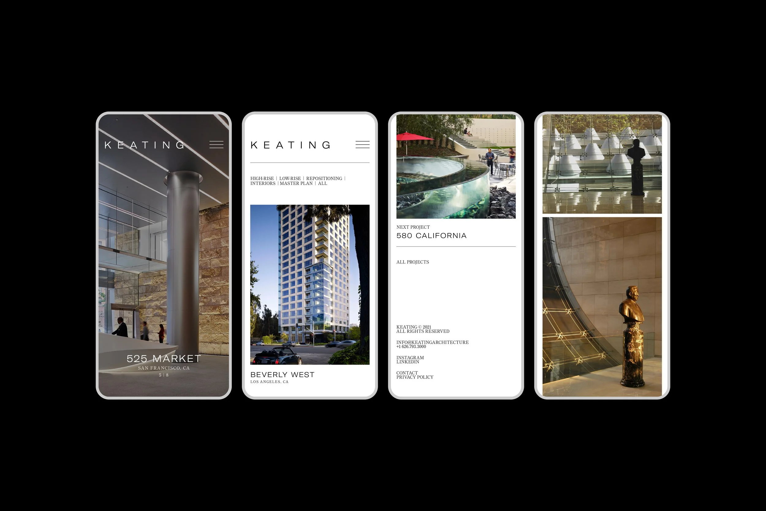 Keating Architecture crafts signature landmarks in city centres across the globe from their Los Angeles studio. They are recognised for their commitment to design quality and attention to detail. This resulted in an understated identity, allowing their depth of expertise in creating sophisticated forms to take centre stage.