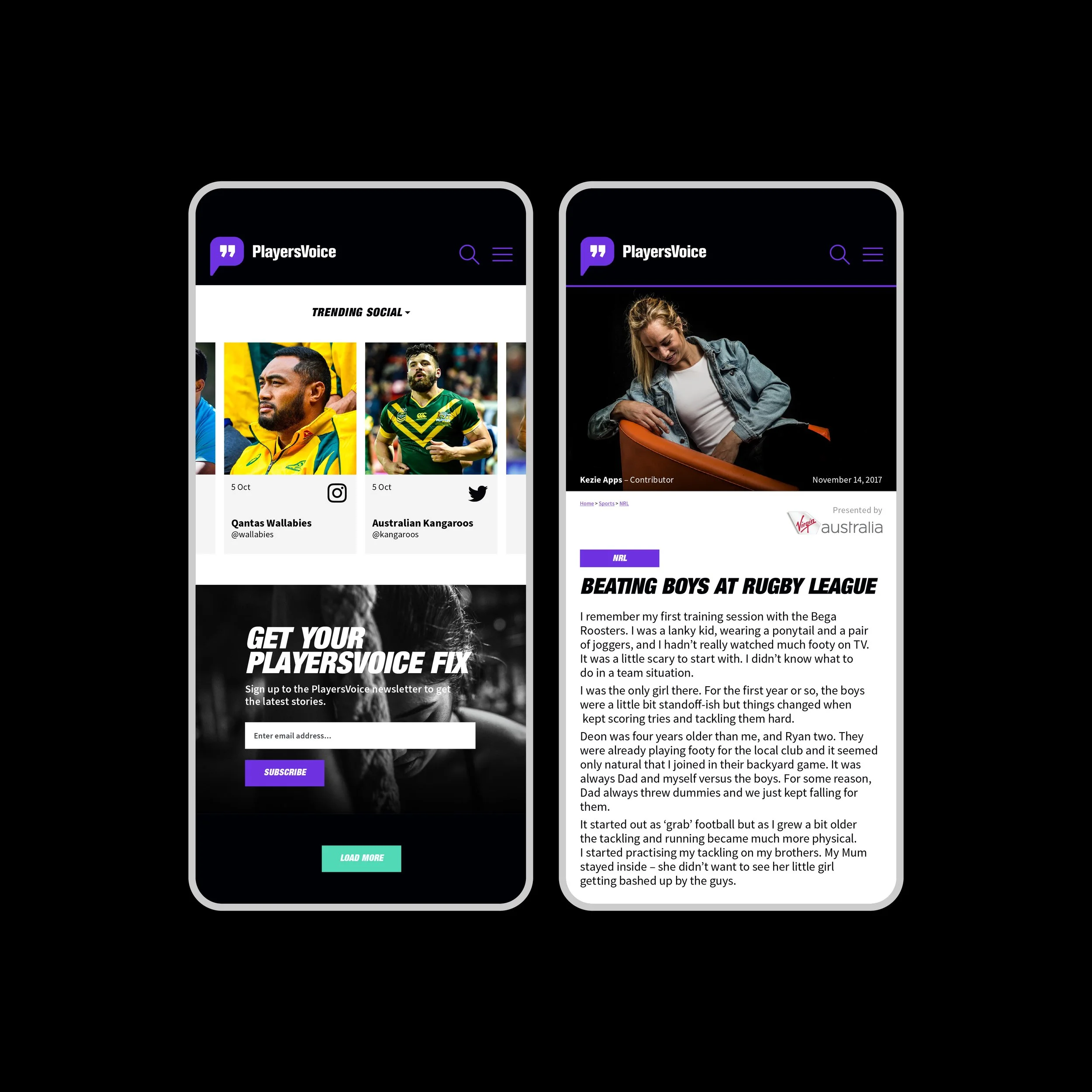 An online platform for Australia’s elite sportspeople that enables them to tell their stories, first-person and connect with their fans in a deep and authentic manner. PlayersVoice is authentic. A community where sportspeople can share their thoughts, hopes, dreams and fears — a home for sports lovers who want to know more than just the score.